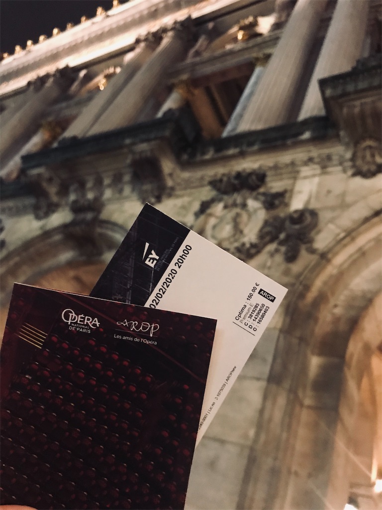 午前中に初めて足を踏み入れたオペラ・ガルニエへ再び。1階席なのでみんなでそれなりにドレスアップして気持ちを高めます。(実際はそこまでドレスコードは厳しくない印象でした。ジーンズやスニーカーなどカジュアルすぎる服装さえ避ければ良さそうです)